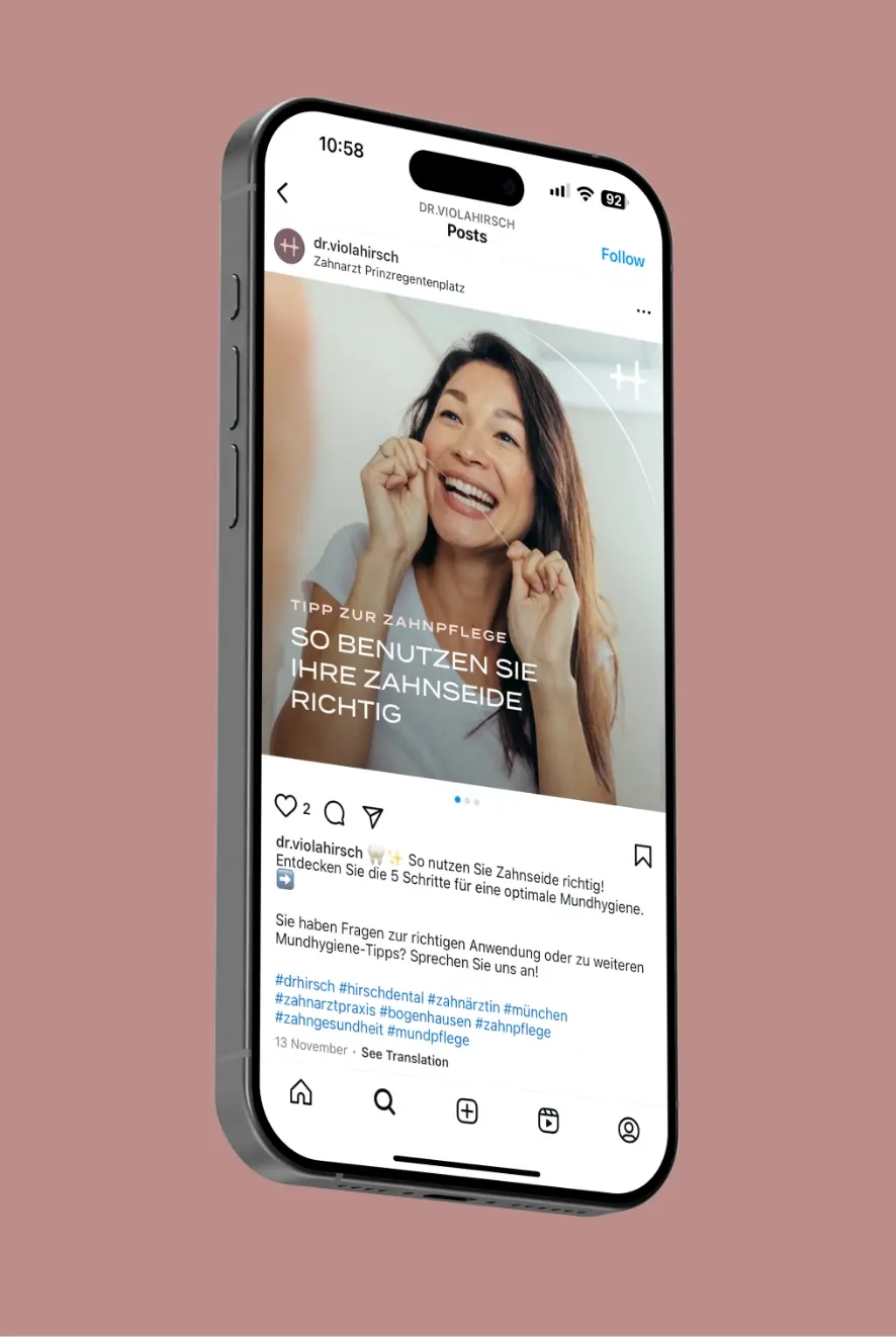 Für die Zahnarztpraxis von Dr. Viola Hirsch haben wir eine Marke geschaffen, die den Fokus auf Zahnerhaltung und ein gesundes Lächeln legt, das lange hält.