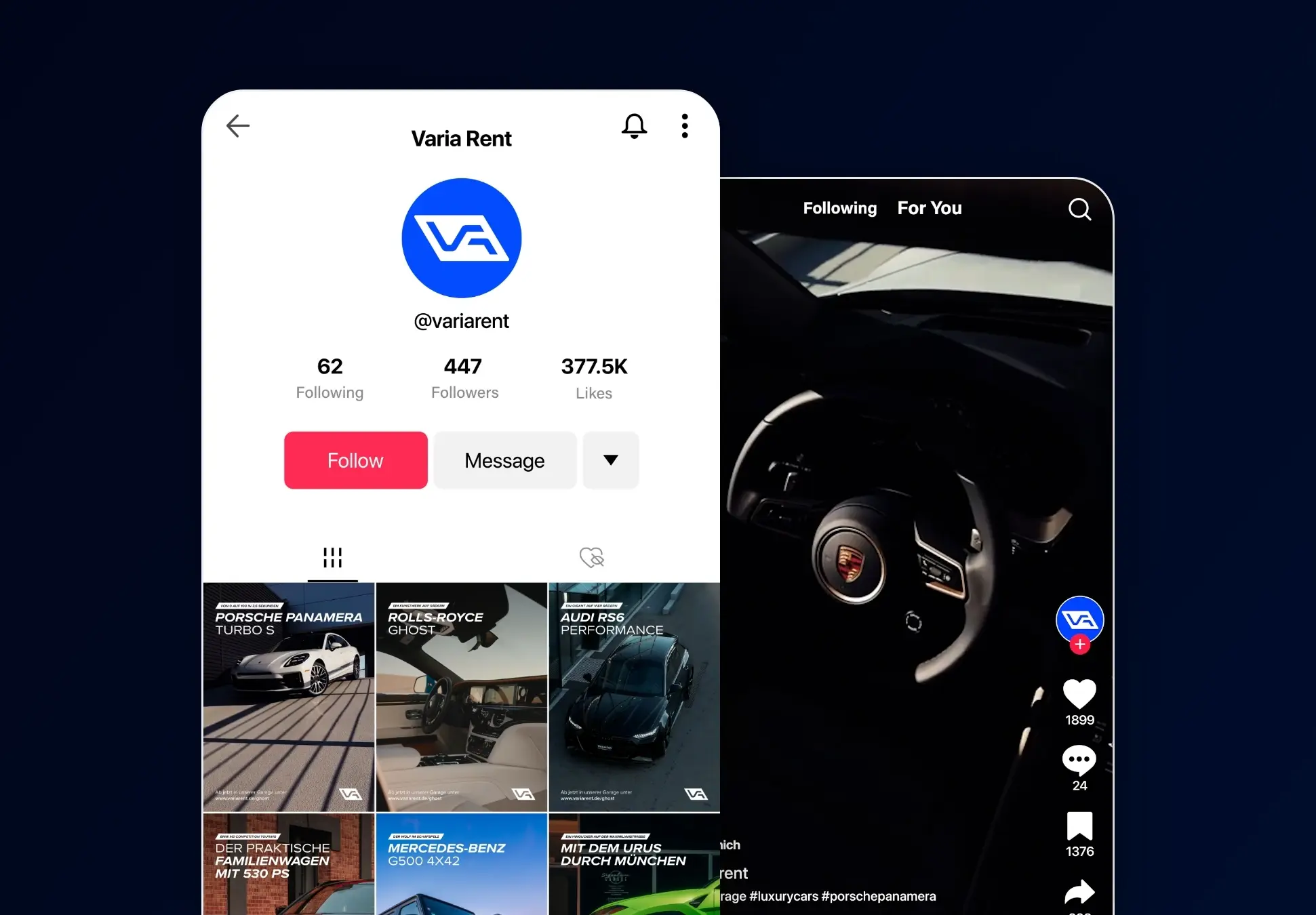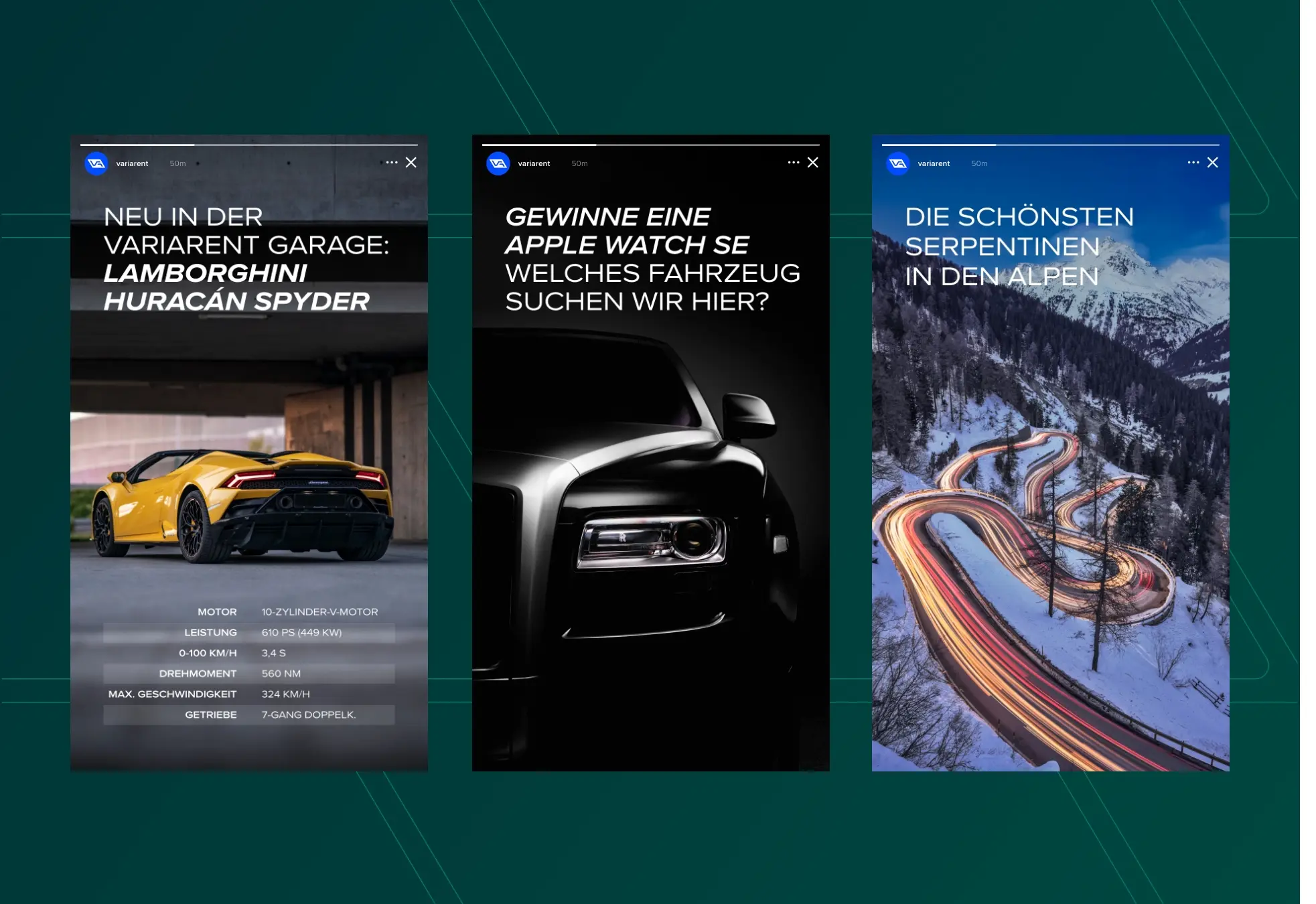 Wir haben nicht nur die visuelle Identität der Marke gestaltet, sondern auch kreative Inhalte für Social Media konzipiert und umgesetzt. Mit maßgeschneiderten Kampagnen, die Ästhetik und Lifestyle betonen, erreicht VariaRent seine Zielgruppe dort, wo sie unterwegs ist.