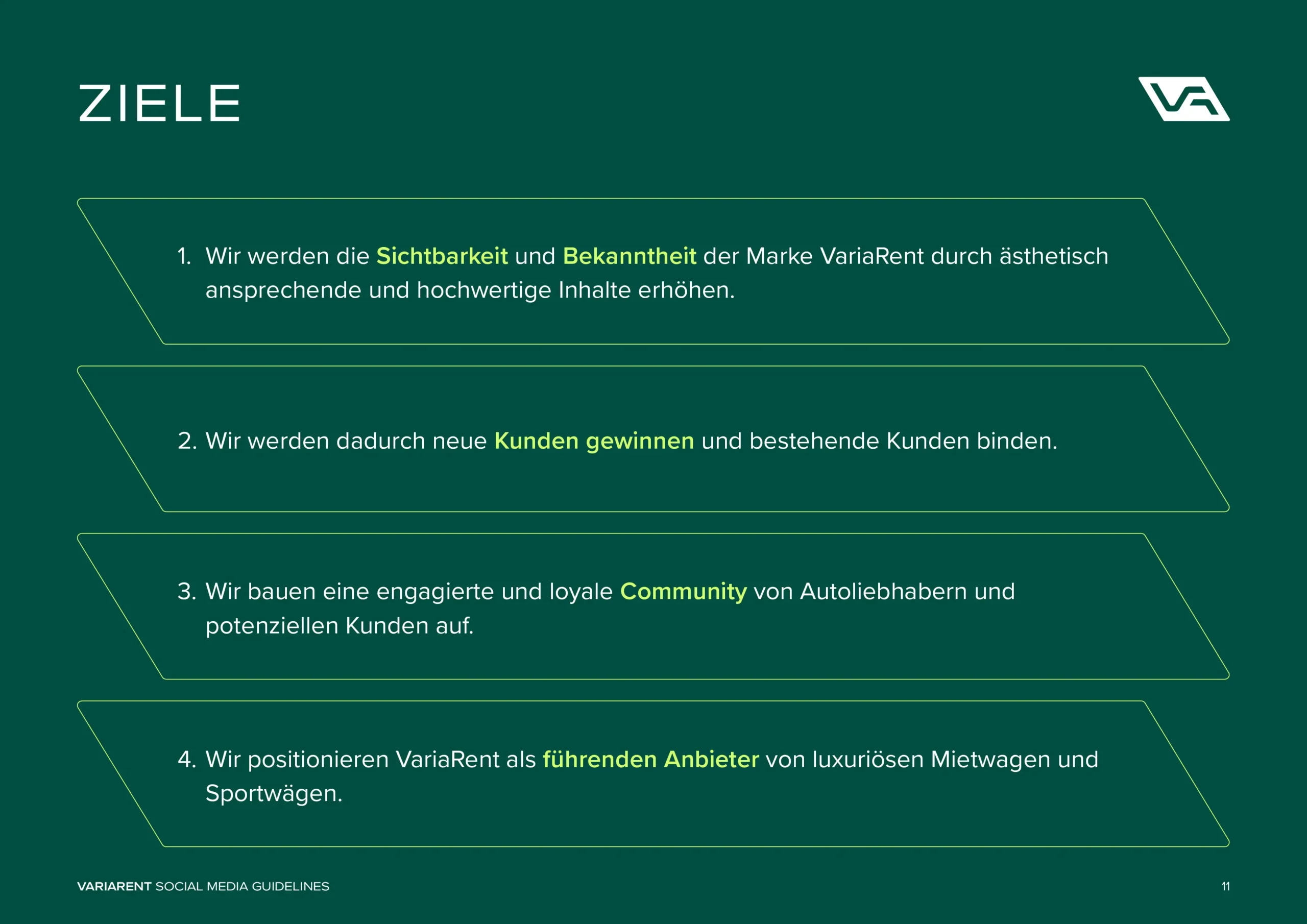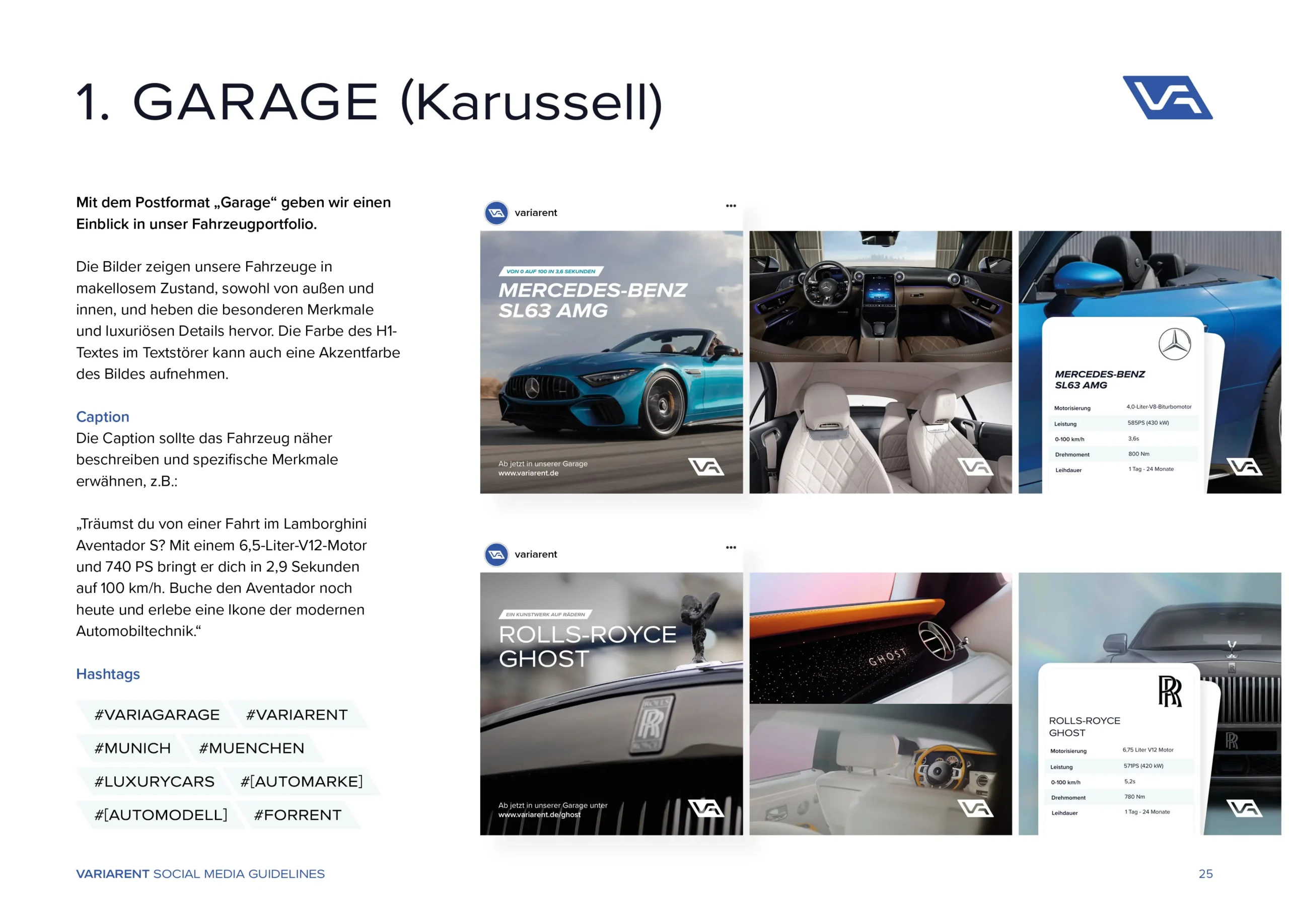 Für unseren Kunden VariaRent haben wir eine moderne Markenstrategie entwickelt, die die Exklusivität und Dynamik des Angebots in den Vordergrund stellt. VariaRent vermietet in München eine sorgfältig kuratierte Flotte von Luxus- und Sportwägen.